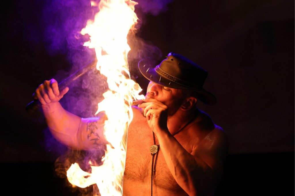 Plongez dans l’univers enflammé et captivant de Marshall Arkley, artiste international du cabaret ! Avec son talent exceptionnel de cracheur de feu et de striptease performer, Marshall incarne la fusion parfaite entre l’audace et la grâce. Sa présence magnétique et son art spectaculaire ont conquis de nombreuses scènes, captivant les spectateurs avec chaque mouvement et chaque éclat de flamme.